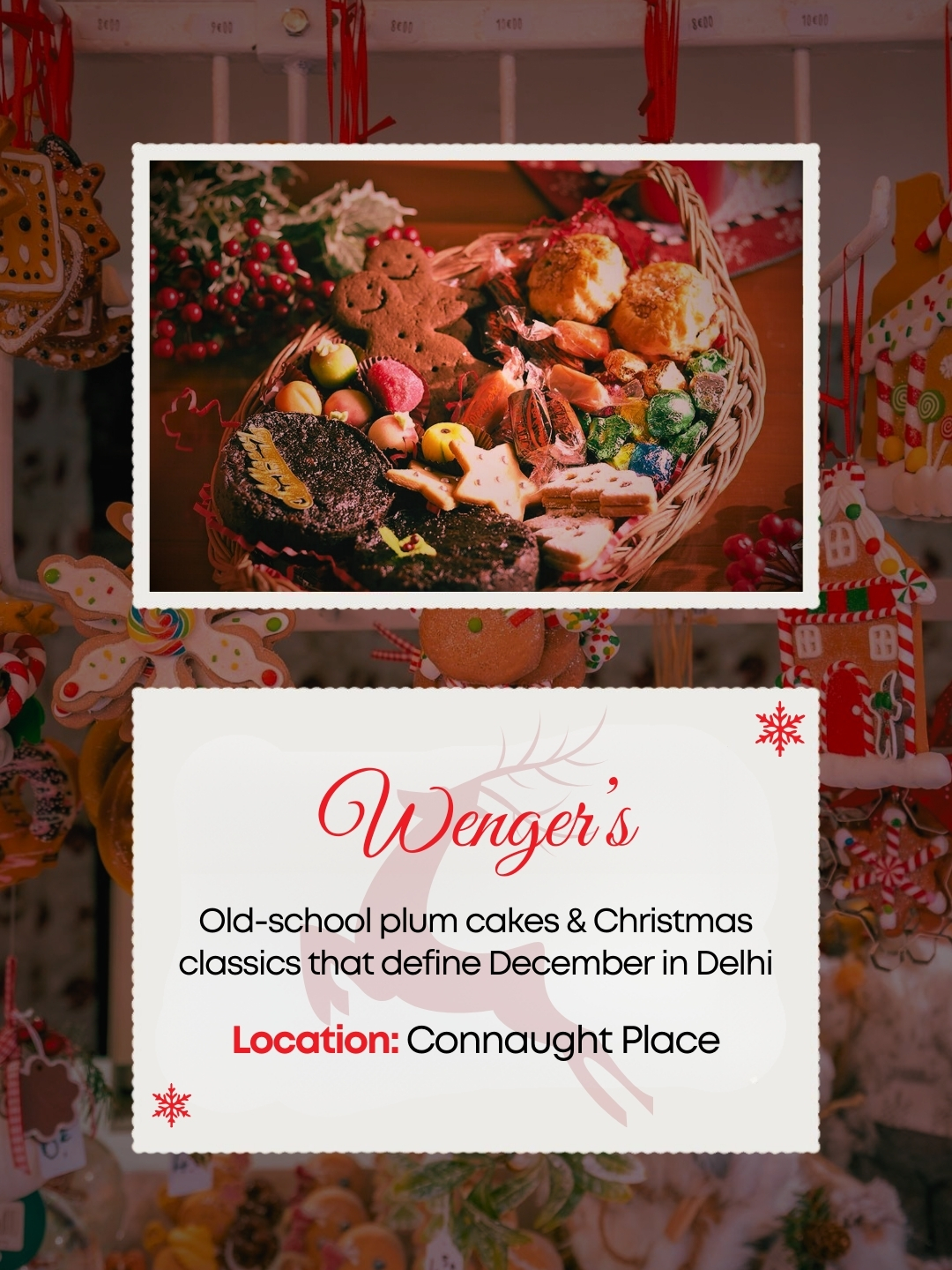A Delhi institution since 1926, Wenger’s is synonymous with classic Christmas baking in the city. During the festive season, their shelves fill up with rich plum cakes, dry fruit cakes and Christmas puddings that many Delhi families have grown up eating. It is one of those places where Christmas feels traditional and familiar.