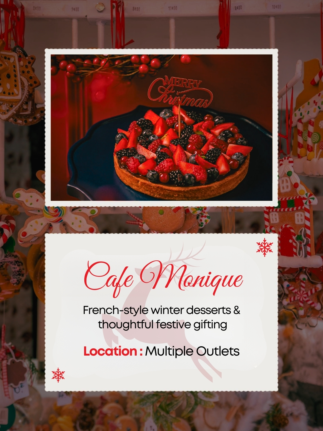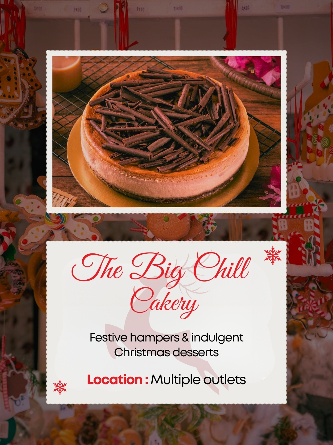 A natural extension of The Big Chill’s indulgent dessert reputation, the cakery goes all out during Christmas with festive hampers and holiday bakes. Their Christmas offerings are popular for gifting and larger celebrations, especially for those who enjoy rich flavours and generous portions.