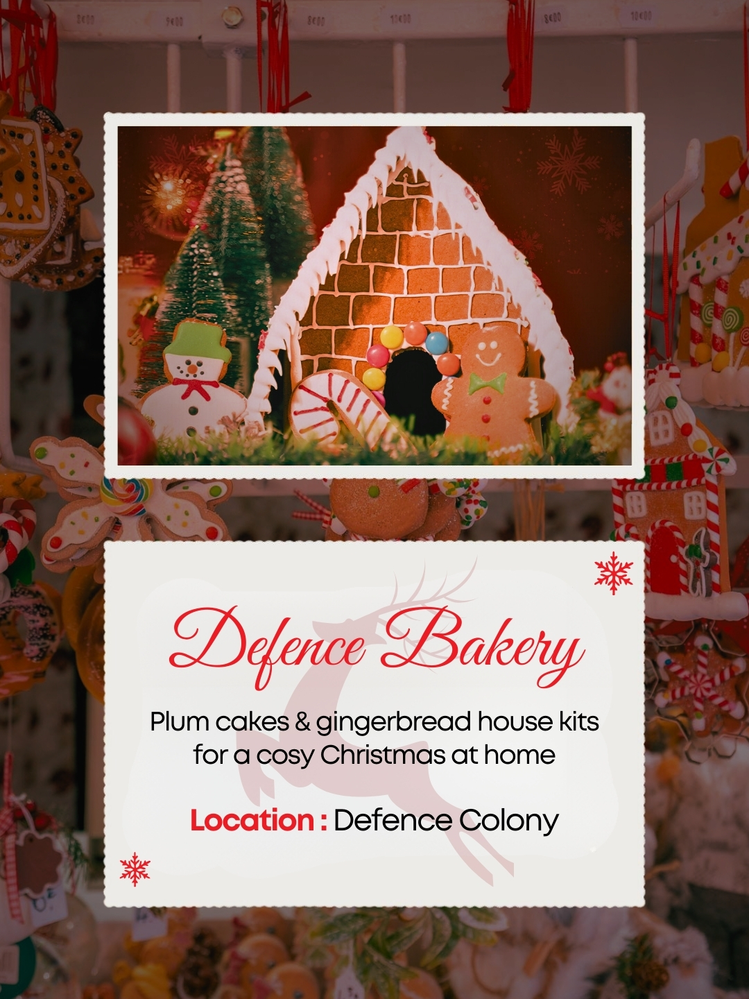 Running since 1962, Defence Bakery is one of Delhi’s most nostalgic stops for Christmas bakes. Along with classic plum cakes, the bakery is especially loved for its festive specials like the DIY gingerbread house kit, which has become a family favourite over the years. It is a place that keeps Christmas simple, warm and rooted in tradition.