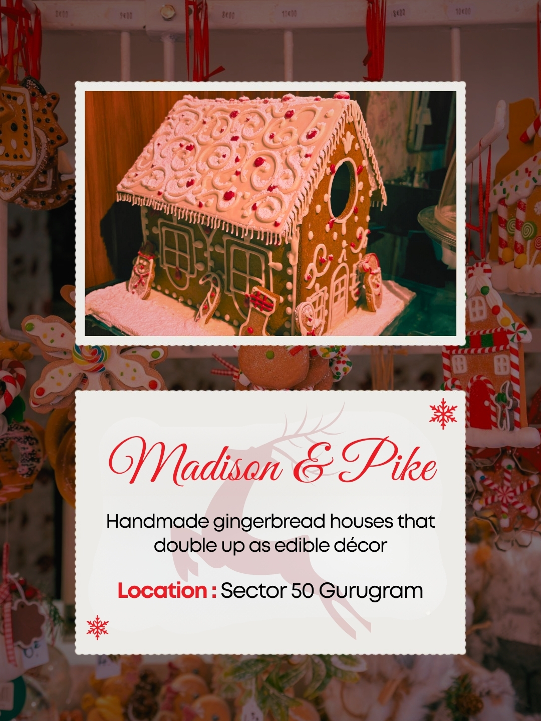 Madison and Pike have built a reputation around their handcrafted gingerbread houses, which arrive every Christmas season in beautifully designed forms. These edible creations double up as festive décor and centrepieces, making them especially popular for gifting and Christmas tables.