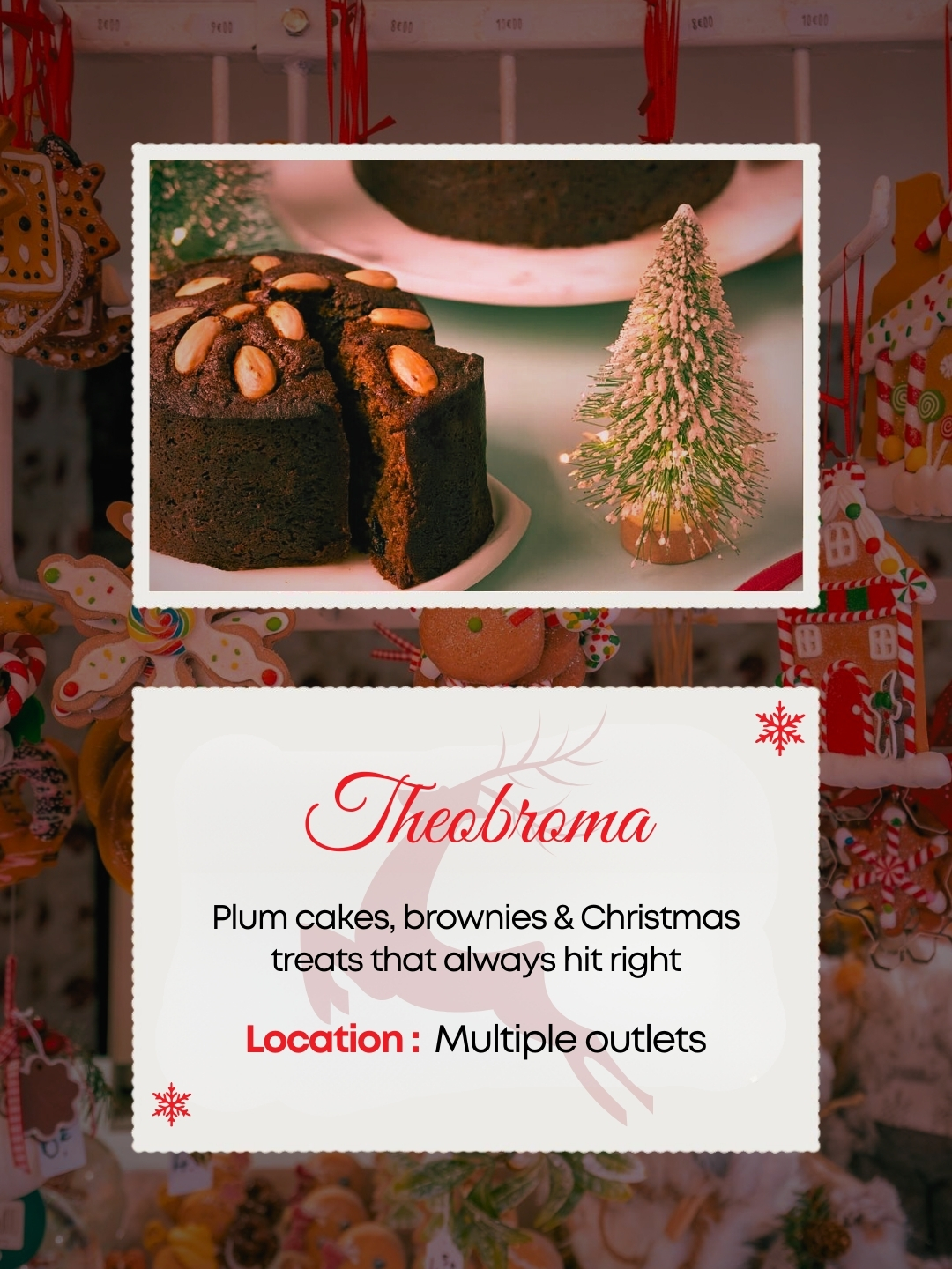 A familiar name across India, Theobroma’s Christmas menu includes plum cakes, brownies and festive desserts that are easy crowd-pleasers. Their wide availability makes them a convenient choice for last-minute festive shopping without compromising on quality.