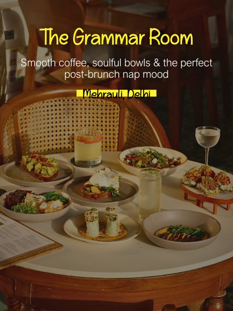 Right next to Qutub Minar, The Grammar Room is where you go when you want good food and peace in equal measure. From smoothie bowls and eggs to their craft cocktails and strong coffee, this place makes every brunch feel effortless.