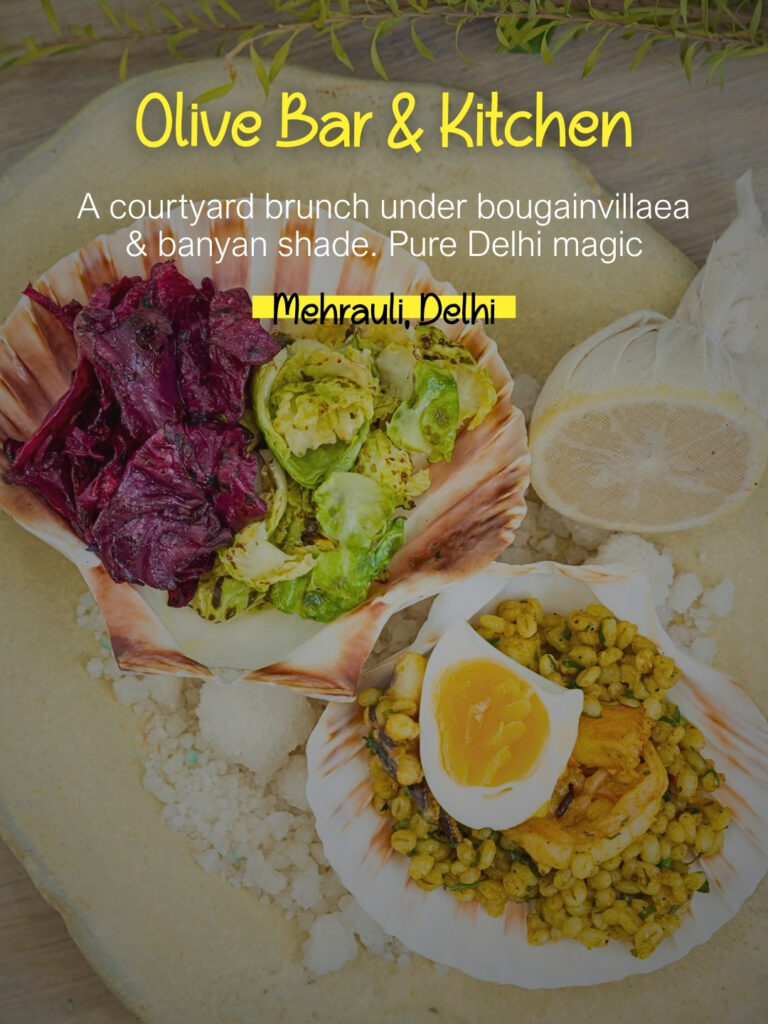 Few places in Delhi match Olive’s charm. Think whitewashed walls, a Banyan tree canopy, and bougainvillea all around. Whether you’re sipping mimosas or cutting into wood-fired pizzas, Olive’s brunch feels like stepping into a European summer without leaving Mehrauli.