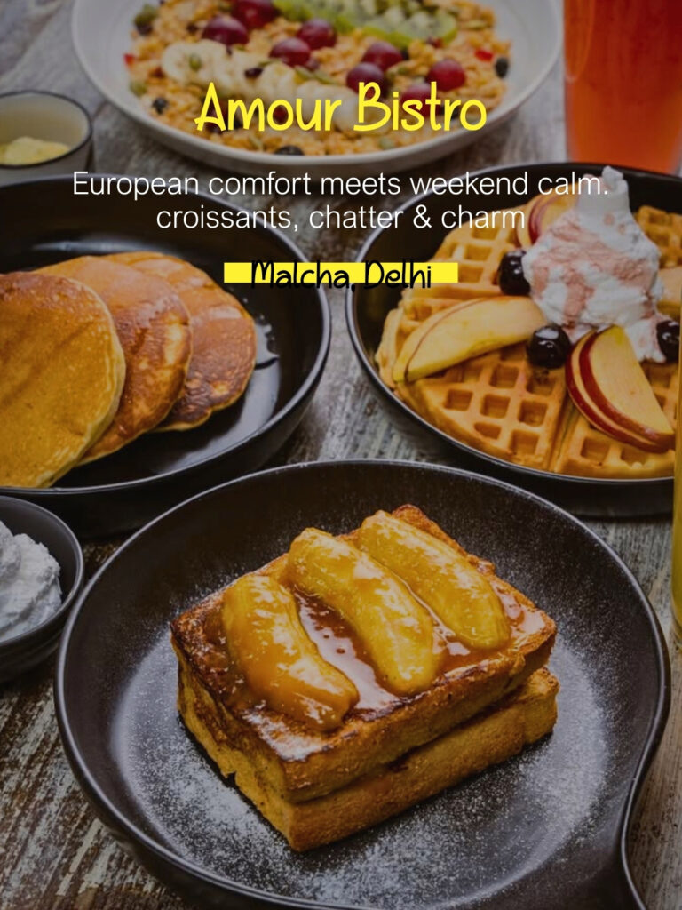 Amour Bistro is where Delhi’s love for European food meets warm, cozy interiors. The menu covers everything from hearty breakfasts to fresh salads and indulgent desserts. Perfect for catching up with friends or a quiet brunch date.