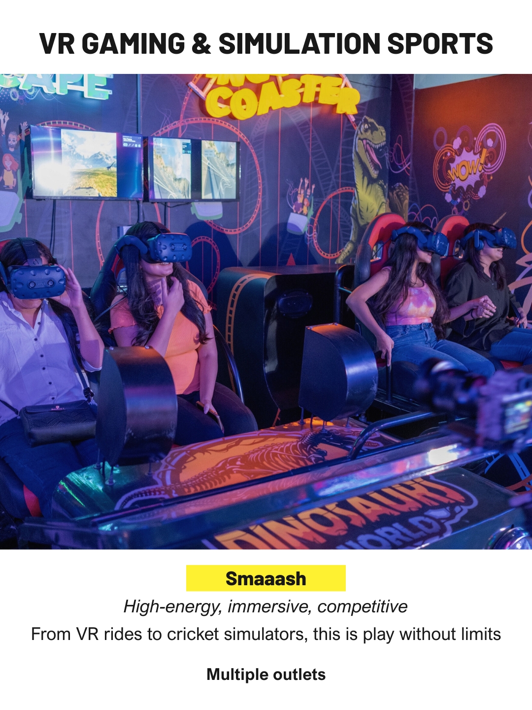 Smaaash combines virtual reality rides, rage rooms, bowling lanes and sports simulators into a single high-energy entertainment space. Visitors can experience everything from cricket simulation to immersive VR adventures, making it an ideal group destination for indoor play without limits.
