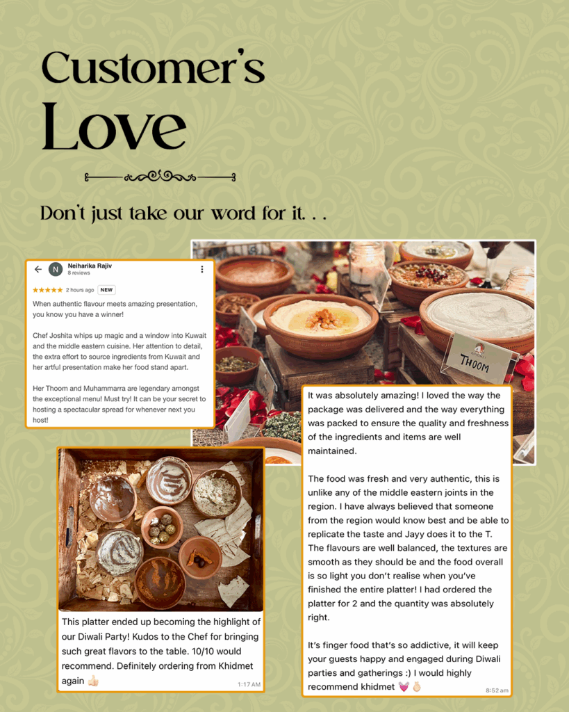 Khidmet isn’t just loved for its food — it’s praised for the story it tells. Loyal customers across Delhi rave about the quality, authenticity, and attention to detail. From packaging to portion, every order feels personal.