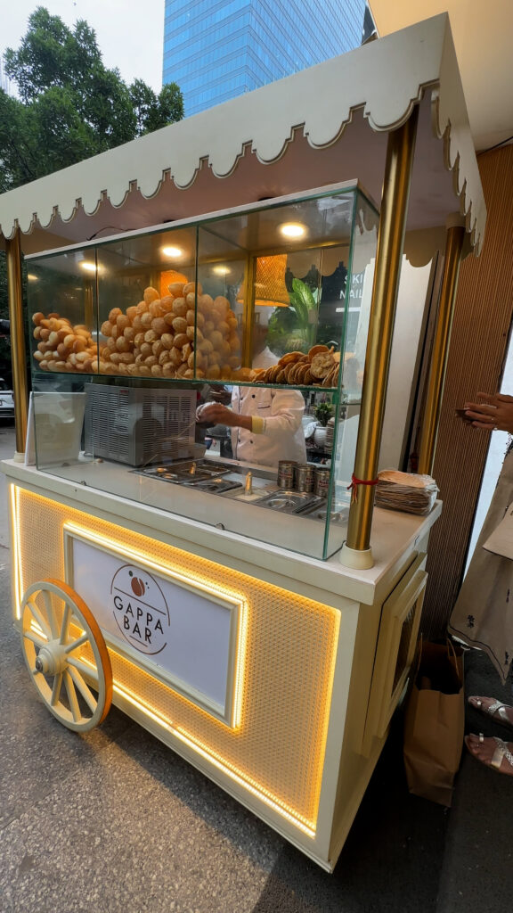 Located in the heart of Sector 18, Noida, Gappa Bar isn’t your regular paani puri stall. Designed by Interiors INC and inspired by five-star hospitality, this luxury golgappa cart is changing how you experience this beloved snack.