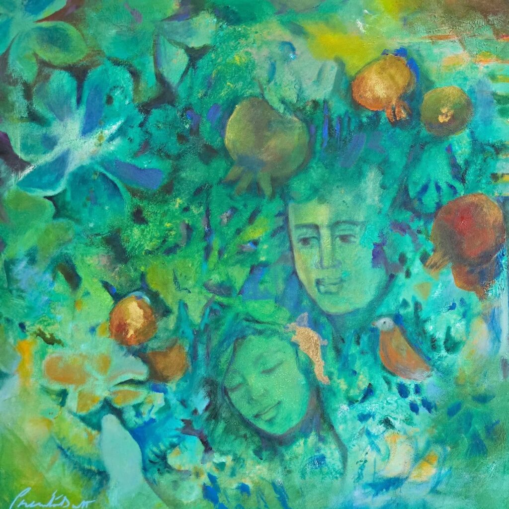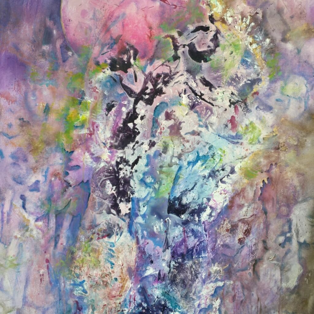 Paintings: Dreamlike watercolours that dissolve into each other like drifting clouds, alongside bold, textured canvases carrying the weight of memory and belonging.