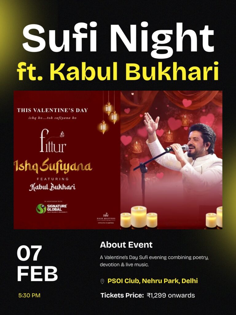 Booking link: https://in.bookmyshow.com/events/ishq-sufiyana-featuring-kabul-bukhari-by-fittur/ET00480684