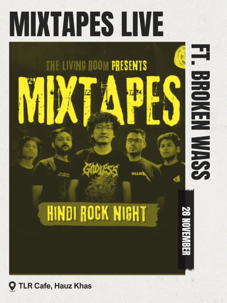 A lively night of Hindi rock with Mixtapes, supported by Broken Wass. Expect raw vocals, soaring guitar work, and a room full of indie music lovers.