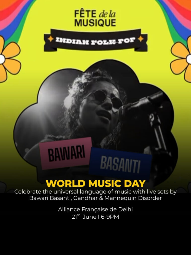Celebrate World Music Day with Indo-French collaboration and live acts by Bawari Basanti, Gandhar, and Mannequin Disorder.