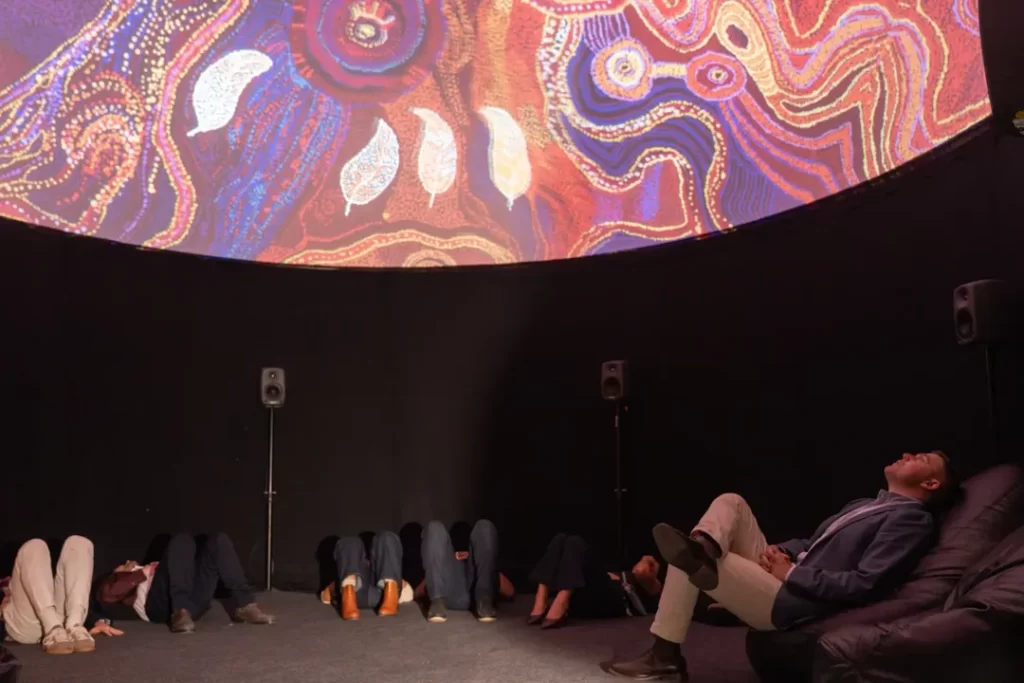 The exhibition traces the journey of the Seven Sisters across vast desert landscapes, bringing to life ancient oral histories that continue to guide cultural identity, spirituality and connection to land. Through a blend of storytelling, light, sound and motion, visitors step into a narrative that is both visually compelling and intellectually grounding, revealing how songlines map geography, kinship and cosmology across generations.