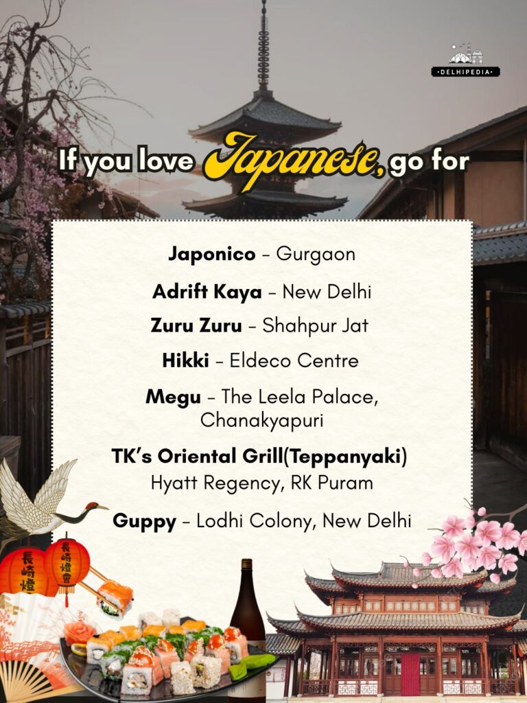 TK’s Oriental Grill — Hyatt Regency, RK Puram: Hyatt’s Japanese grill popular for yakitori and teppanyaki.