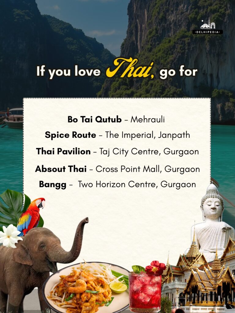 Thai Pavilion — Taj City Centre, Gurgaon: Elegant Thai eatery in Taj, known for aromatic curries and seafood.