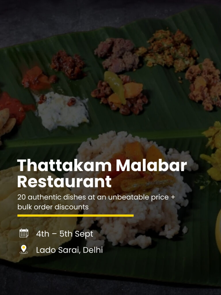 Thattakam Malabar Restaurant is offering a pocket-friendly Onam Sadhya featuring 20 authentic Kerala dishes. They’re also giving special discounts on bulk orders, making it a great option for families and groups.