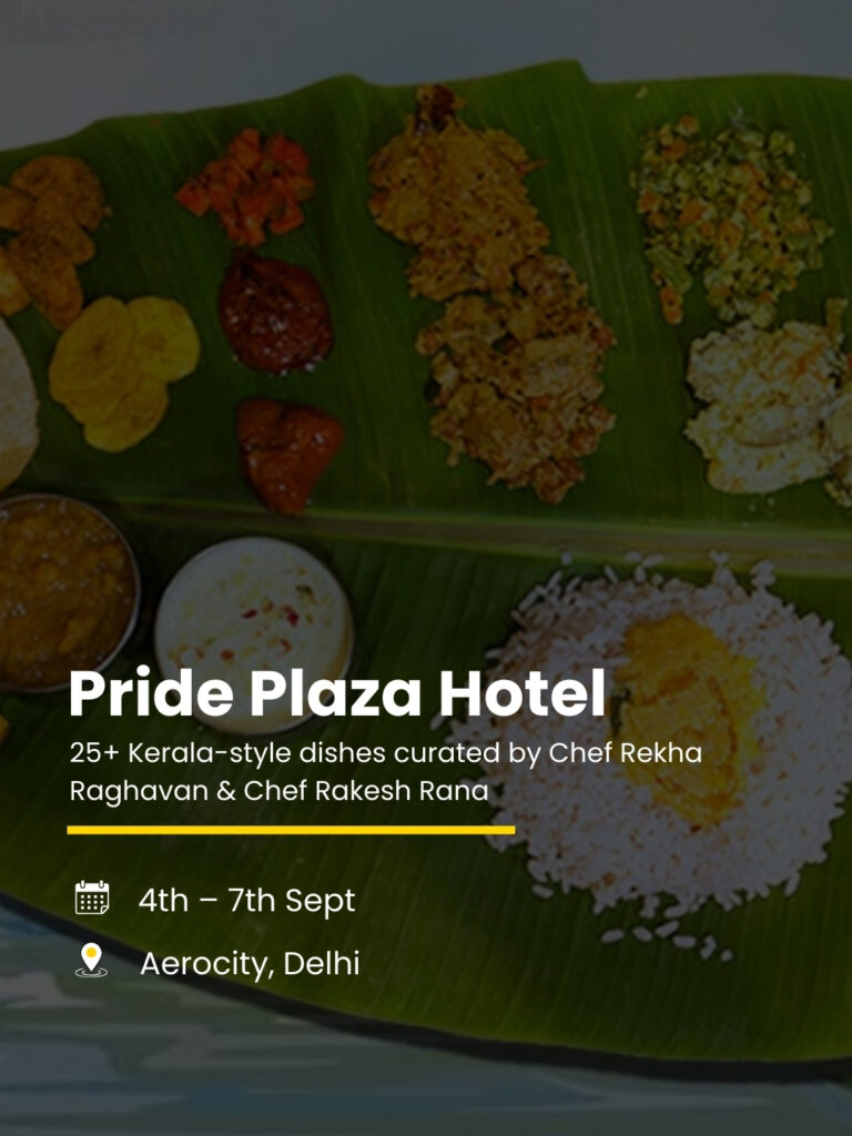 Pride Plaza is hosting an elaborate Onam Food Festival curated by Celebrity Chef Rekha Raghavan and Executive Chef Rakesh Rana. Expect 25+ authentic Kerala-style vegetarian delicacies, all served on banana leaves in true traditional style.