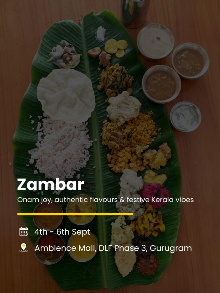 Zambar is set to host a grand Onam feast with authentic flavours, festive vibes, and the true essence of Kerala’s harvest season. Keep an eye out for this upcoming celebration at Ambience Mall, Gurugram.